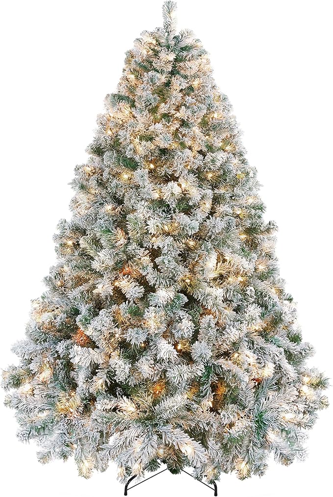 Yaheetech 6ft Pre-lit Artificial Christmas Tree with Incandescent Warm White Lights, Snow Flocked Full Prelighted Xmas Tree W/820 Branch Tips, 250 Incandescent Lights & Foldable Stand, Green & White